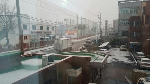 화장실 들어갈때만 해도 눈발이 조금 날리네..정도였는데