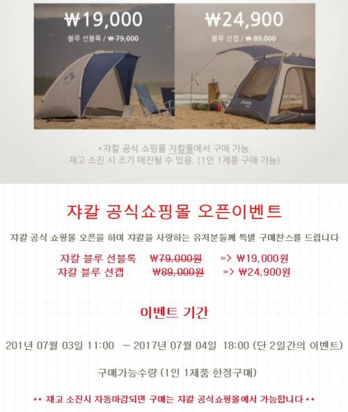 쟈칼 쇼핑몰 오픈기념 한다는데
