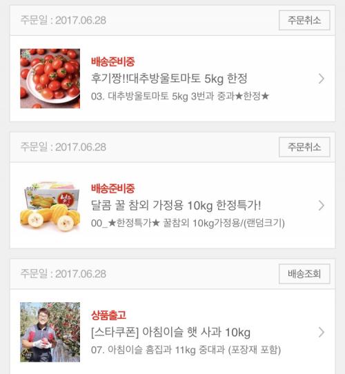 5kg 이내의 방울토마토는 가격대가 있는 상품으로 골랐고 참외도 나름 중고가판매자를 선택했습니다만