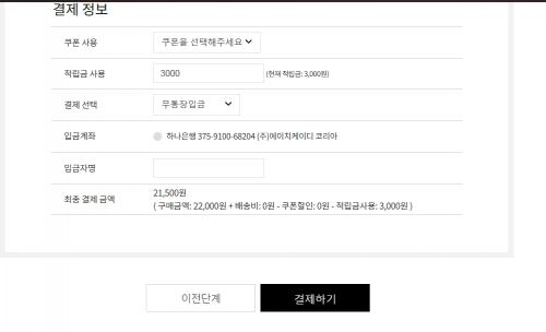 혹시나해서 다시 구매페이지 들어가니 적립금(3000) 사용후 최종 결제금액이