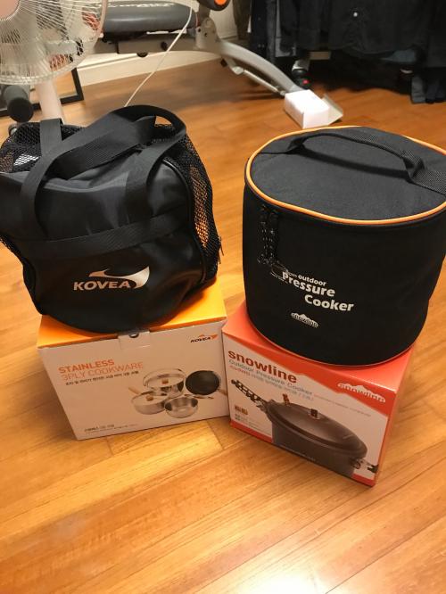 얼마전 서울하늘님께서 대구해주신 스테인레스코펠, 얼마전 타임세일때산 설선 압력솥입니다! 캠장비가 하나씩 늘어나니 어머니께서 방이 캠핑장이냐고하시네요..ㅎㅎ