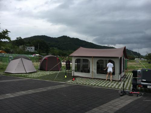 간밤에 물폭탄을 제대로 맞은후ㅋㅋㅋ 기상후 타프아래를 보니 비가 옆으로 왔나봐요ㅋㅋㅋㅋ