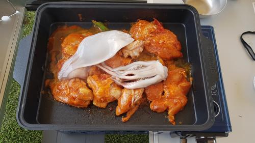 쭈꾸미닭갈비에 오징어를 추가해 봤습니다.
