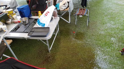 비바람이 들이치니 짐이 타프 가운데 있어도 젖습니다....ㅜㅜ