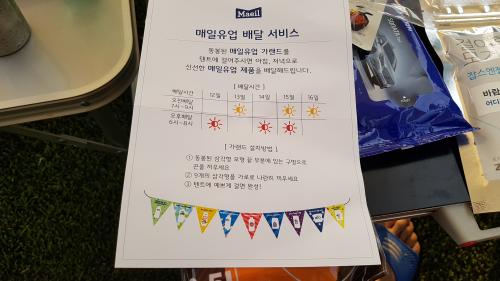 매일우유에서 준 가렌더는 텐트에 걸어두면 매일 우유배달을 무료로 해준다고 합니다.