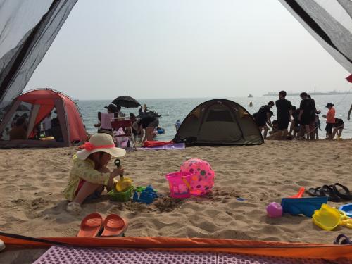 급하게 그늘막 하나 챙겨서 바닷가에 나왔는데