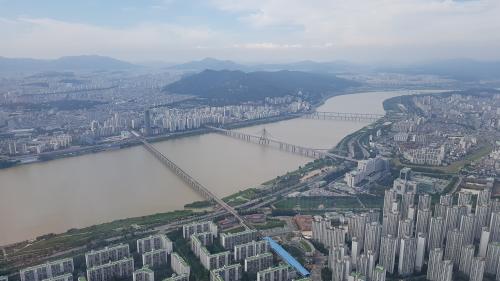 장마가 지난지 얼마 안돼서 한강이 흙탕물 색이네요..