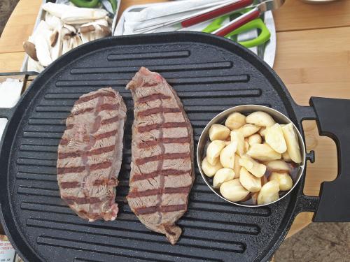 낮잠 좀 자다 일어나서 배고파서 고기 구워먹었어요.