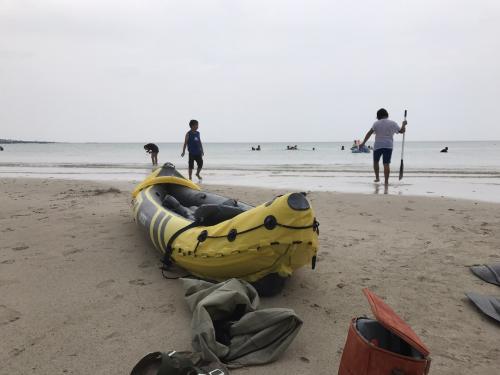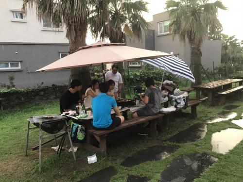 중간에 비가 내려서... 다행이 해변에 설치하려고 가져간 이마트발 파라솔..