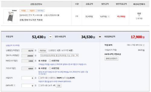네. 특별쿠폰(?) 20%를 안쓰고 기다리고 있었더니 저 금액이 나오네요. | ||