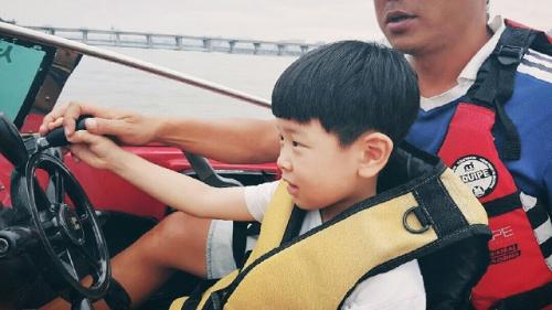 6살배기 아들놈은 엄마와 하루종일 옆에서 구경만 하다가 마지막에 모터보트를 얻어 탓습니다.