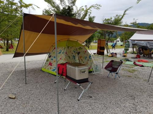 이랑님이 저번 번캠때 기부해주신 타프 개시도 하고 그늘막 조합으로 ㅎㅎㅎ