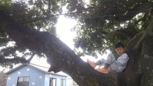 마을 입구에 있는 나무에 올라가 아침을