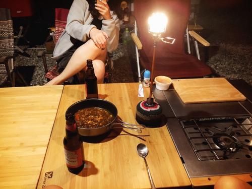 와이프 친한 친구중에 해남으로 시집와서 얼굴 보기 힘든 친구네 가족이 먹을걸 잔뜩 사들고 방문해줘서 아무도 없는 캠핑장에서 대놓구 왁자지껄 부어라 마셔라도 했네요^^