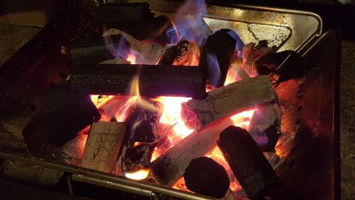 모기쫒을려고 장작을 지핀김에 숯도 올려줍니다.