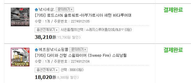 이리저리 검색해보고 쿠폰 적용해보고 가격 괜찮다 싶어 상품은 루어 낚시광인 친구의 최종승인하에 결재를 마쳤습니다.