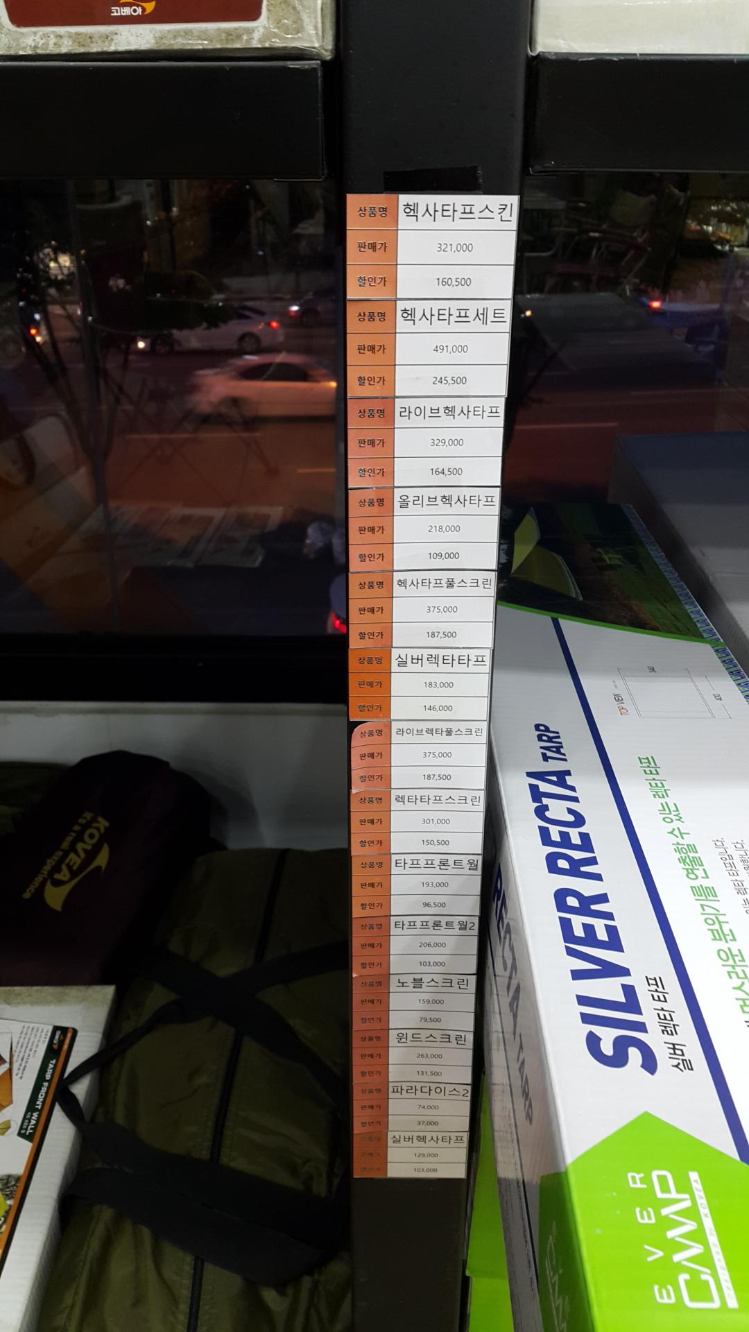 눈치보면서 찍은 저의 관심사.. 타프와 타프스크린 가격~~ (사진이 돌아가서 죄송합니당. ^^;;)