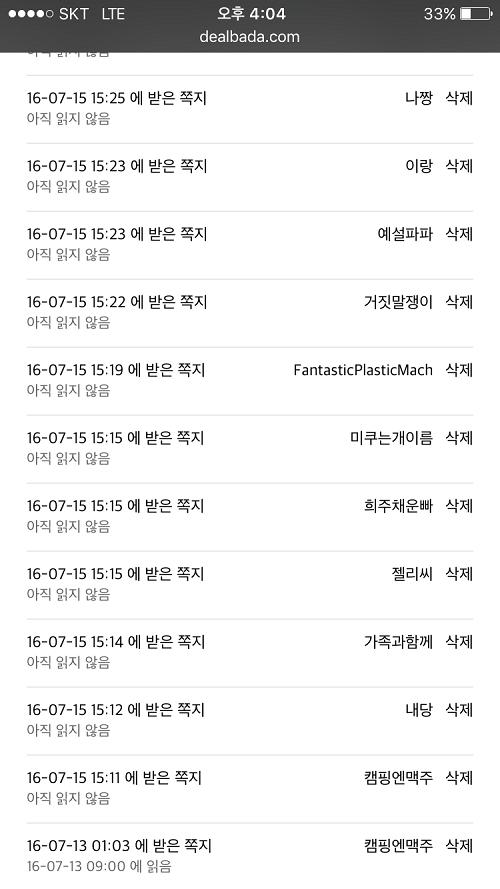 다른분들의 쪽지는 카운트에만 반영하고 읽지 않고 삭제 하겠습니다^^