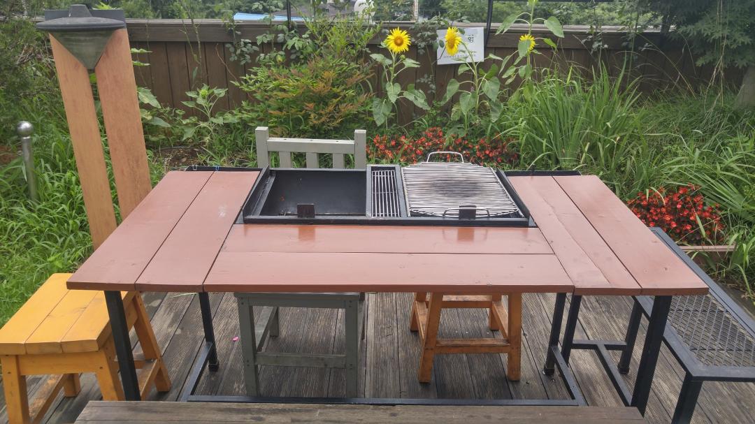 가족들과 바베큐파티를 하고 있습니다