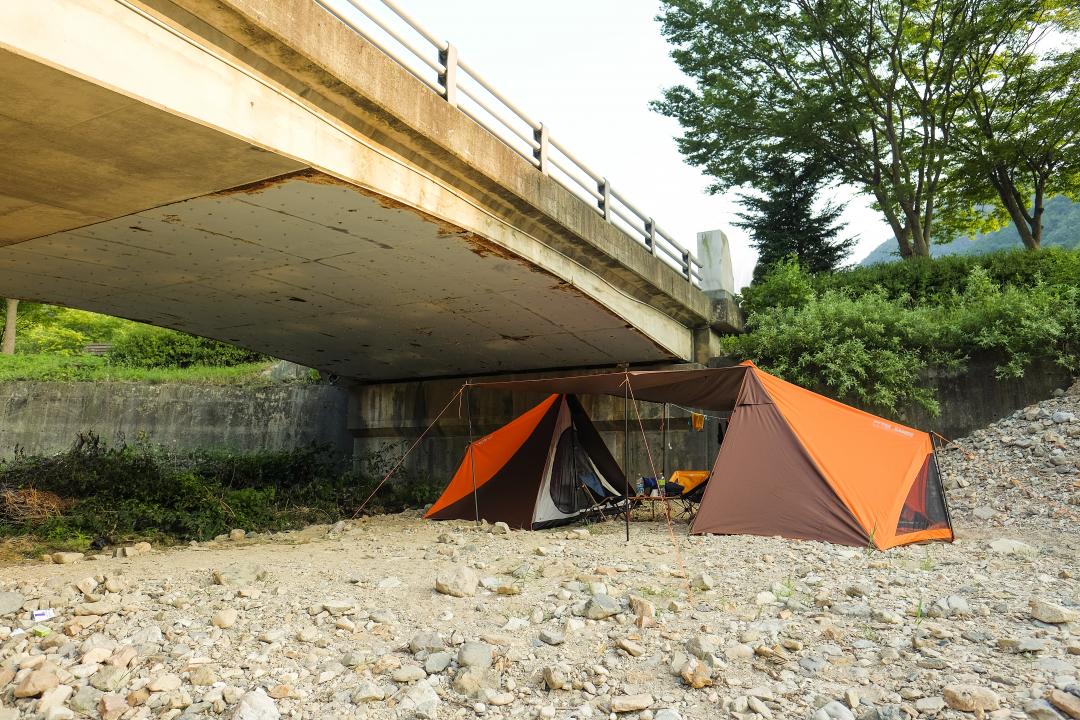 공구리로만든 다리밑 그늘을 활용해서 텐트를 잘치셨다는 얘기에요^^;