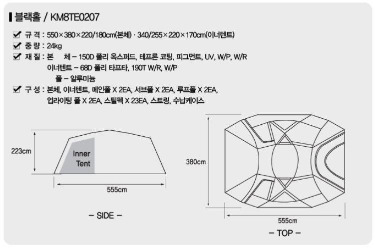 참고로 코베아블랙홀 리빙쉘 크기입니다. ^^
