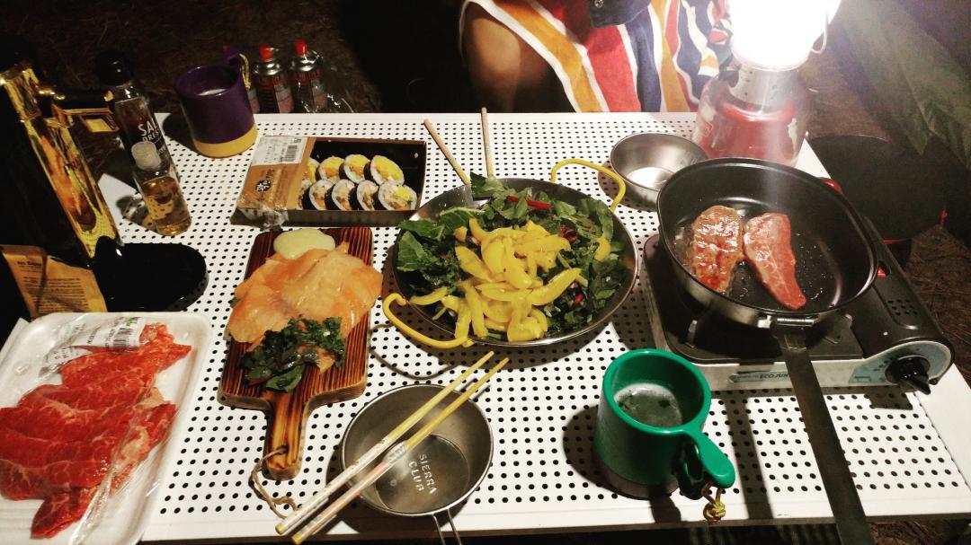 쉘터 쳐놓고 안에서 허세 음식 차림으로 해 먹다가