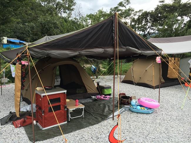 저희가 타프치는동안 빈이파파님께서 셋팅해놓으신 타프명당아래~~~저도 꼽사리로 제 텐트도 설치하고^^