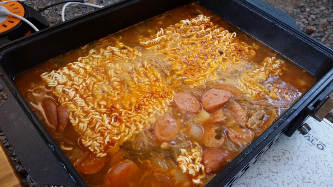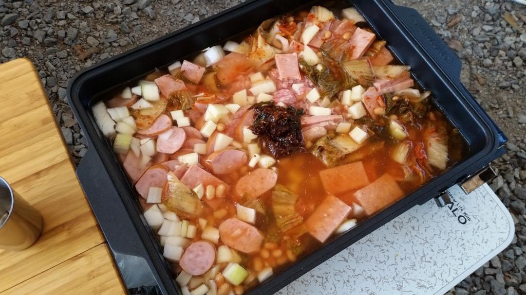 부랴부랴 세팅하고 부대찌개로 개시합니다.ㅋㅋ