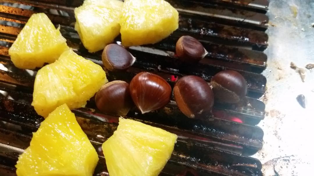 마지막으로 파인애플과 밤을 굽다가 밤이 펑~!