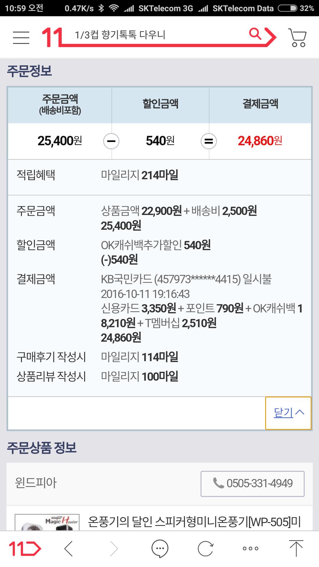 오케이캐쉬백 18000점정도 제외하고 최종 결제금액 3350원~