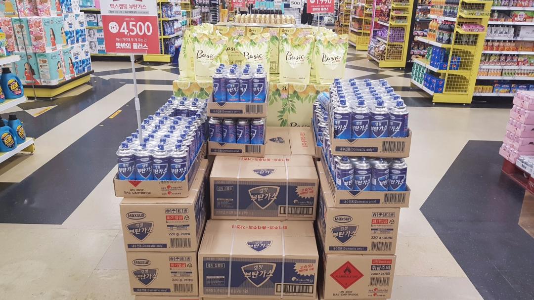 가까운 식자재 마트나 이런곳 가시면 길쭉이 부탄가스 1박스 28개에 15000원 아래로 파는곳 있어요.... |