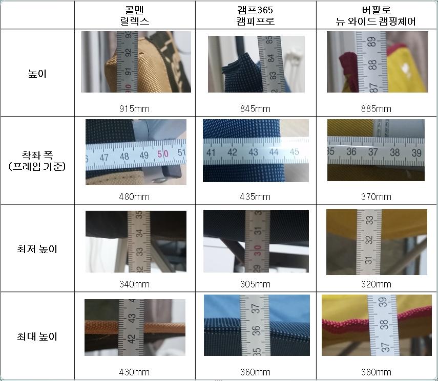 개인적인 착좌감 순으로 비교하자면 콜맨,캠프365, 버팔로 순이네요.