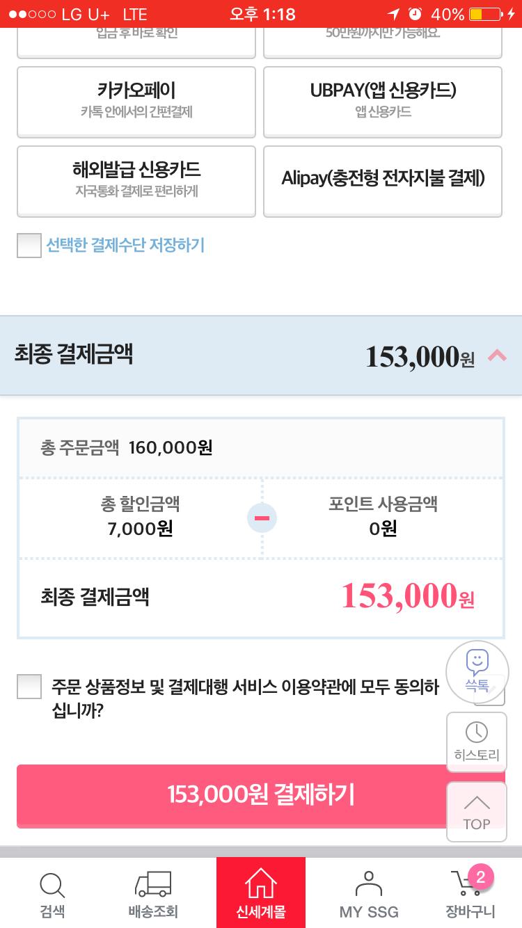 Bc카드가 없어서 신세계복지몰에서 질렀습니다 신세계는 160000만데쿠폰먹이면 153000원이라서요