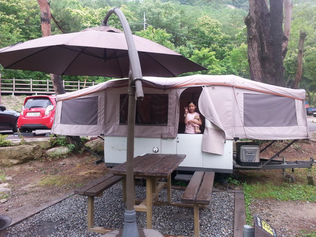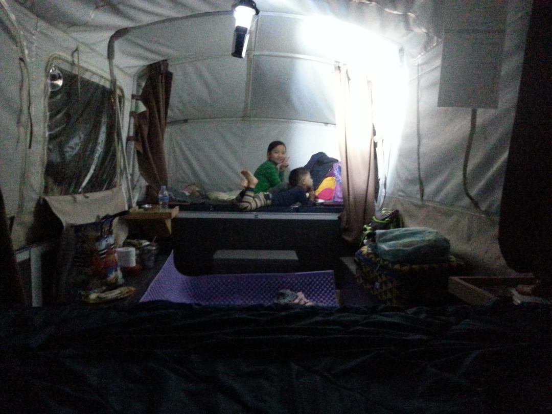 폴딩텐트 안에도 넓어서 양쪽에 2명씩 바닥에 2명정도 취침 가능 하고요