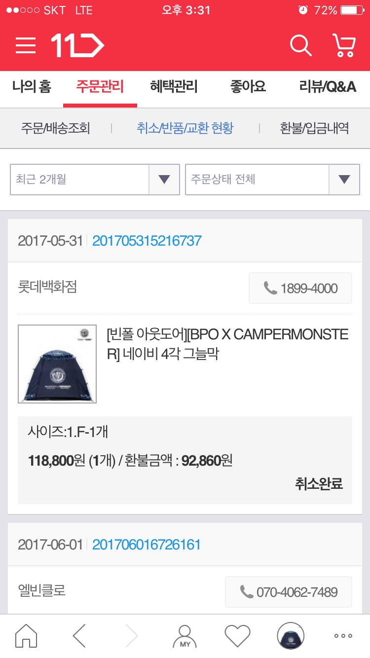 그런데 1개 더 필요해서 1.5만 더 비싸게 롯*몰 에서 6월 4일에 주문 했는데 11번가에서 주문한건 오늘 품절이라고 취소 하더니 더 비싸게 롯*몰 에서 주문한건