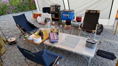 밀레 3폴딩 bbq테이블, 3단 우드쉘프, 주방도구가방, 새밥솥, 차콜스타터, 호스버너 등등....ㅋㅋㅋㅋㅋㅋ