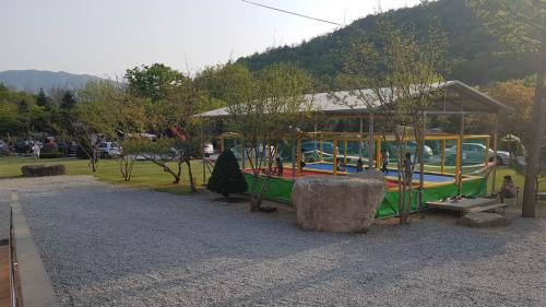 캠핑장 입구쪽엔 힐링가든이라고 펜션같은 시설도 있습니다.