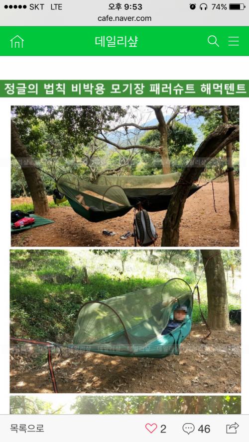 비박가시는 분이나 여름에 모기 안뜯기고 편히 해먹하실분 추천드립니다