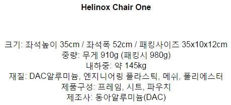 먼저 비슷한 형태에 제일 유명한 헬리녹스 체어원의 스펙을 보면