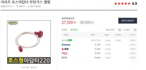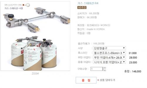 그럼 대충 75,000원 정도면 가스 유닛과 가스 호스를 장만할수 있게 됩니다.