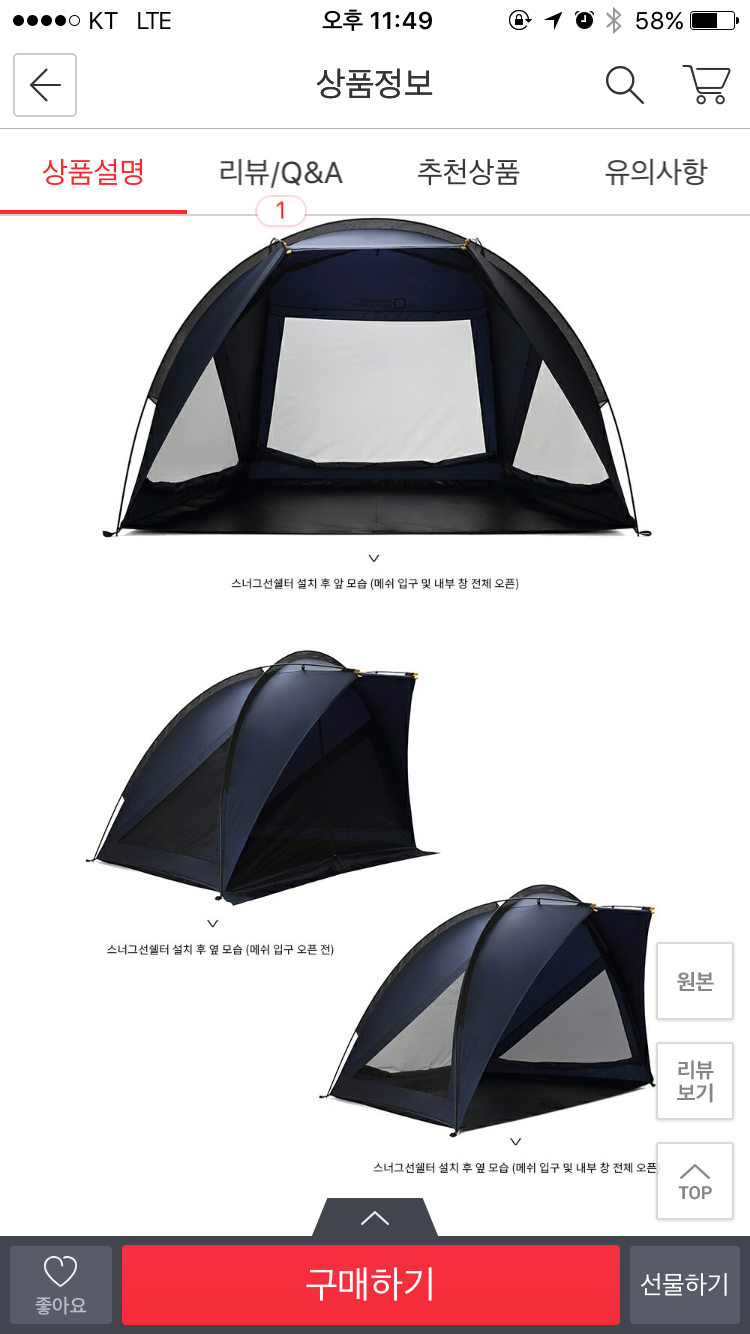 미니멀 쉘터로 좋아 보입니다. 가격도 싸고 베스티블 구매하면 간단모드 텐트로도 가능하겠네요. 개인적으로 색상도 맘에 드네요. | ||