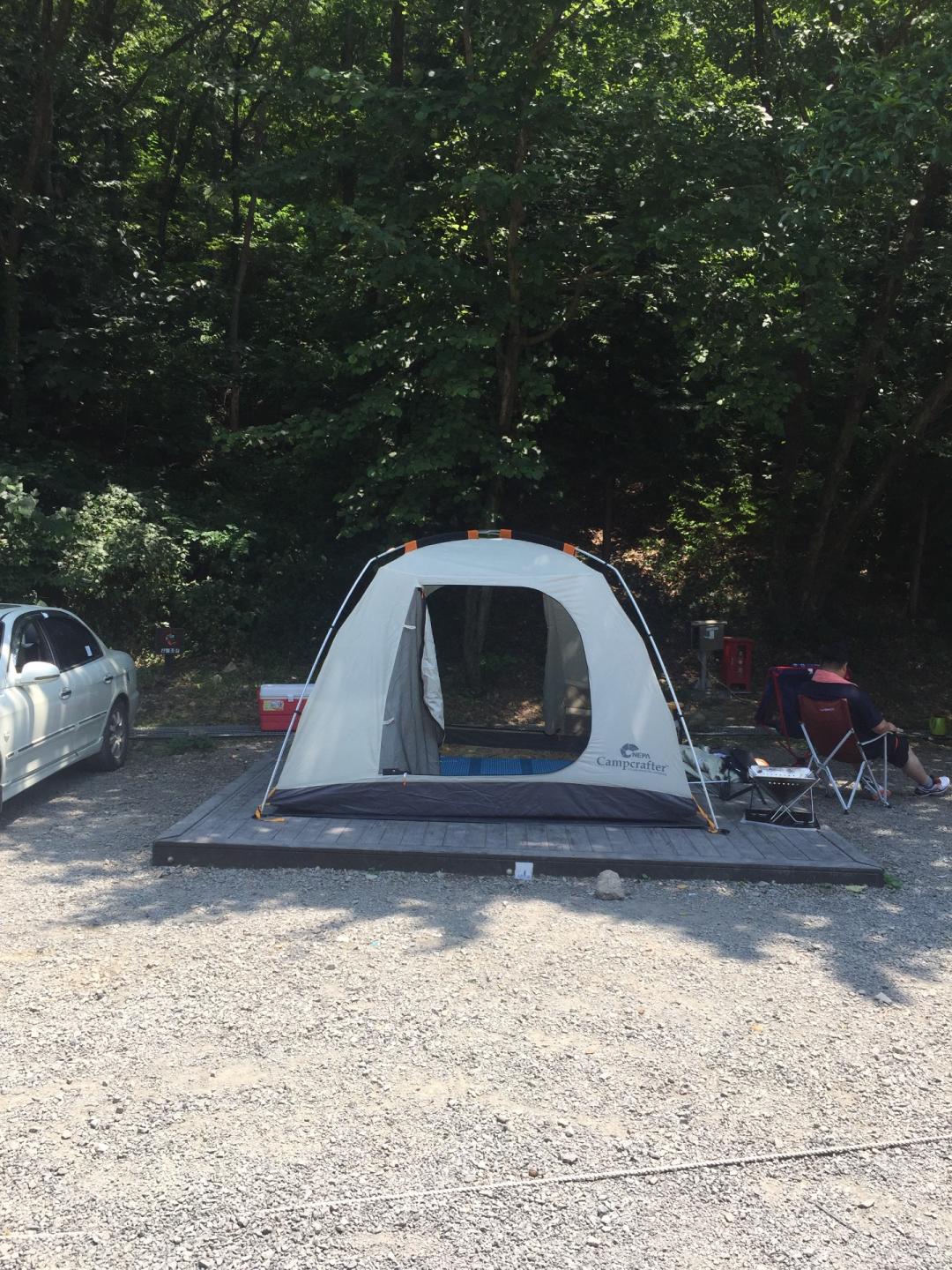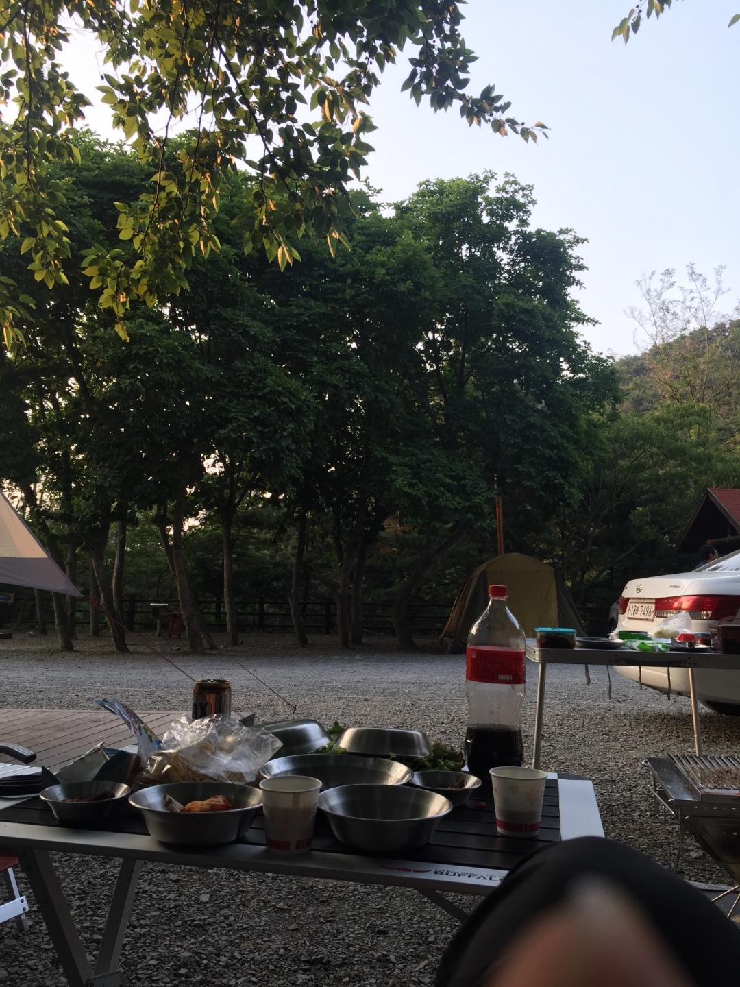 달천오토캠핑장은 나무가 많아 타프가 없어도 괜찮았습니다 도착하자마자 텐트치고 술마시고 또 술마시고