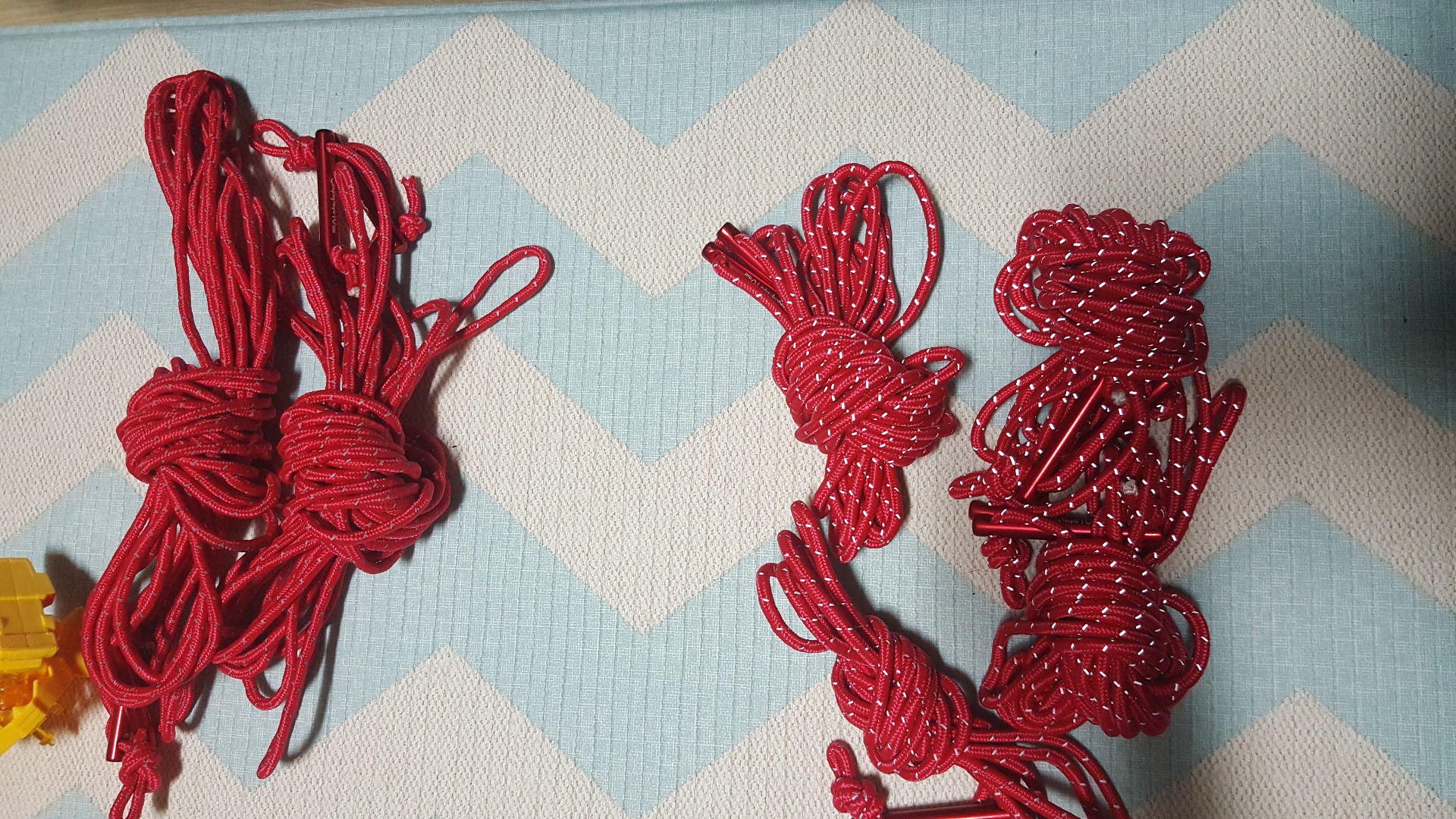 아 이제껏 타프살때마다 스트링을 다줫는데 왜 스트링을.안주는것일까요 이게.뭐라고 1시간이나 걸리는지 ㅋ | ||