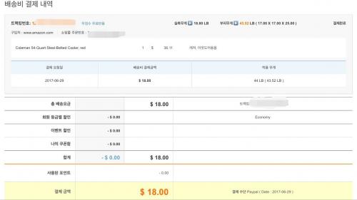 아마존 쿨러 배송비 내역입니다.. > 캠핑포럼