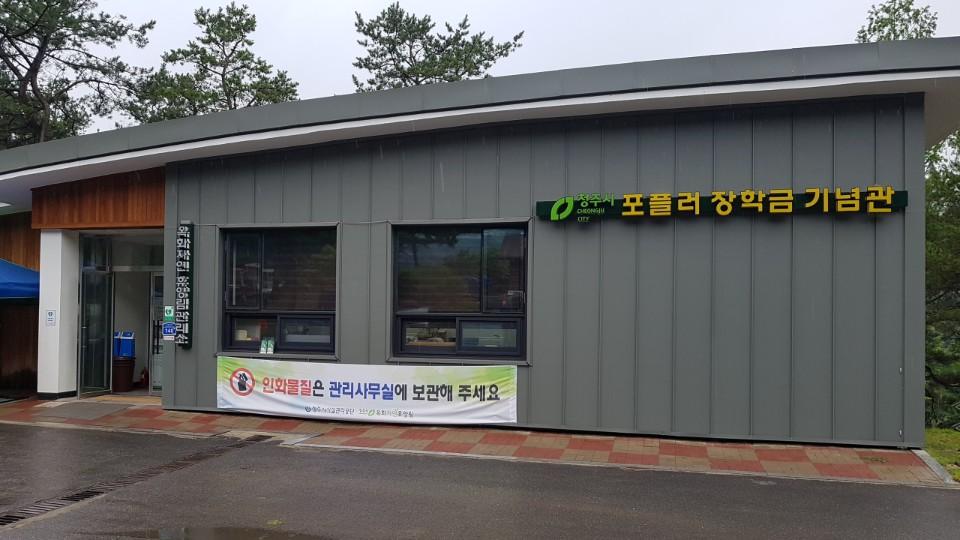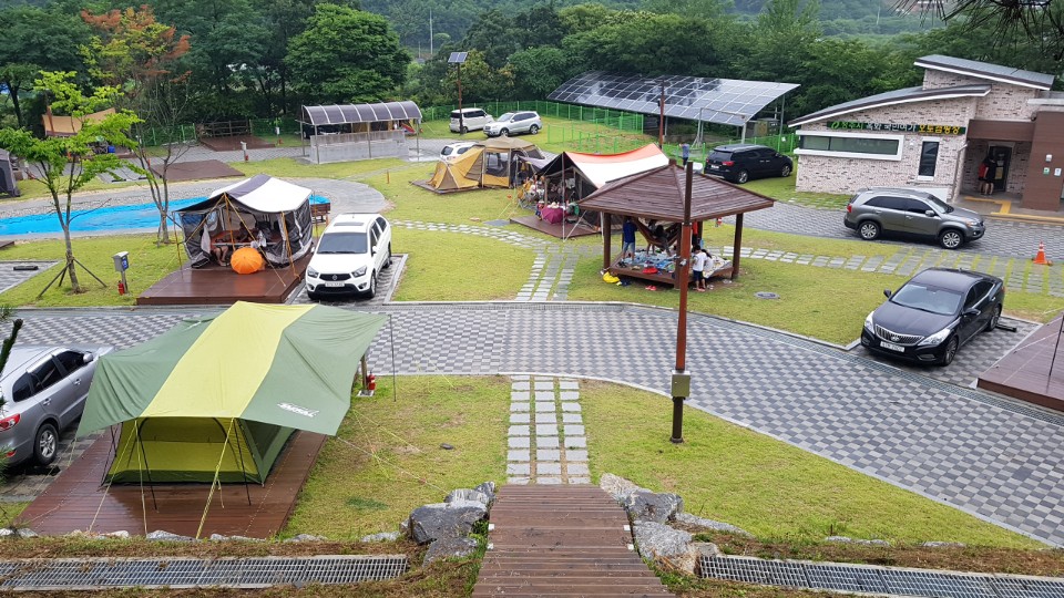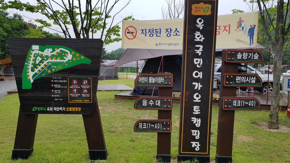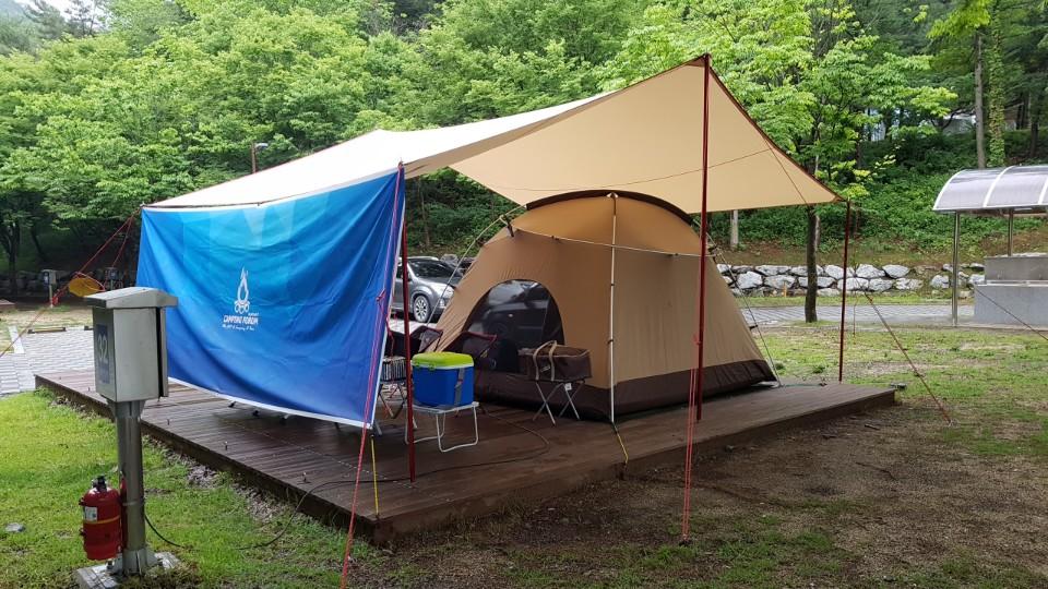 캠핑장은 우연찮게 이삭줍기로 청주 옥화자연휴양림 명당자리를 잡았습니다.
