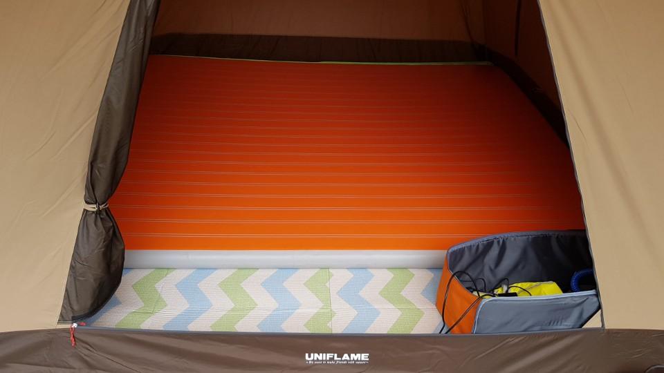 내부에 다시 인디언매트 깔고 침낭 하나 펼쳐줍니다.