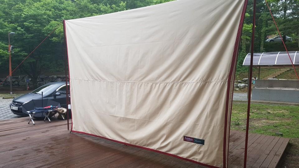 사진에 잘보면 어닝을 폴대에 한번 휘감았어요....