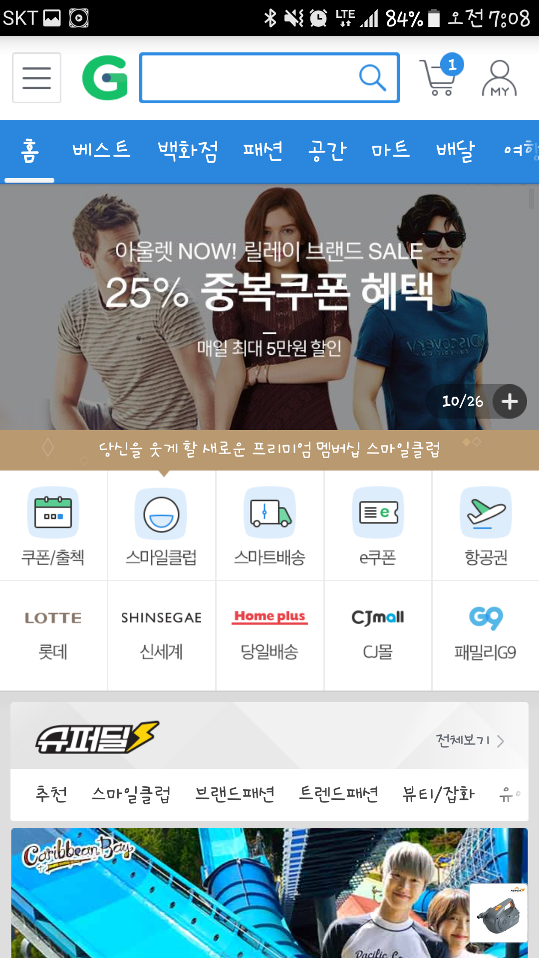 지마켓 메인화면 배너르르 넘기다보면 25프로 중복쿠폰이 보입니다.