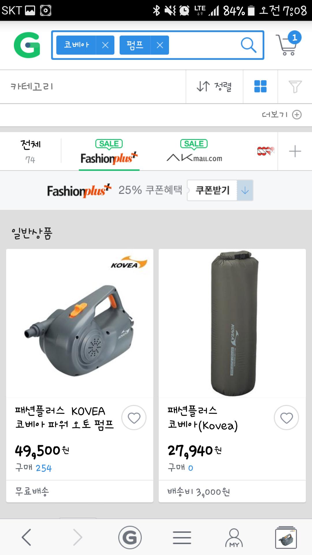 코베아 펌프 검색하고 검색창 아래 탭에서 패션플러스를 선택해 줍니다.