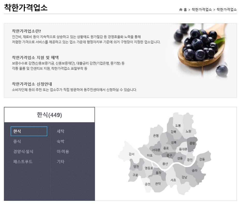 부득히 서울에만 한정되지만 서울시에서 잘 정리한 부담없는 가게들 정보 올립니다.